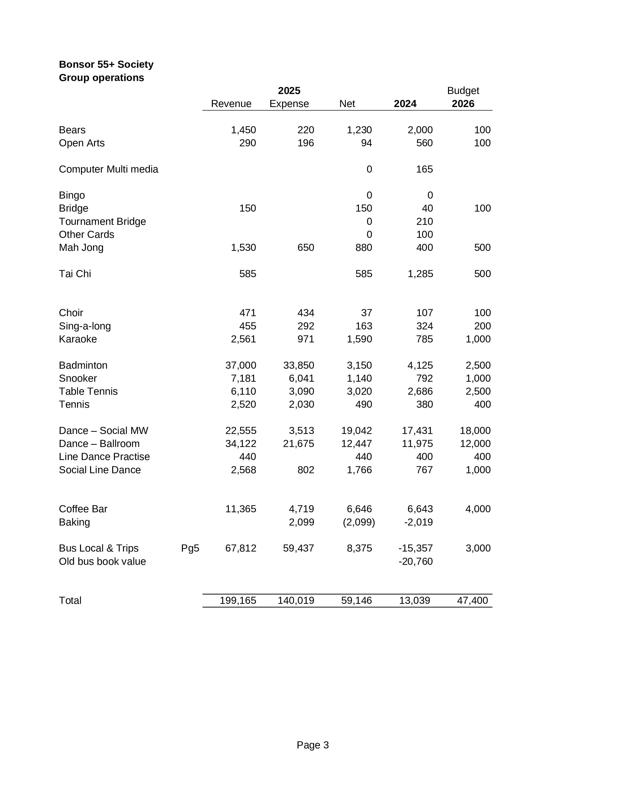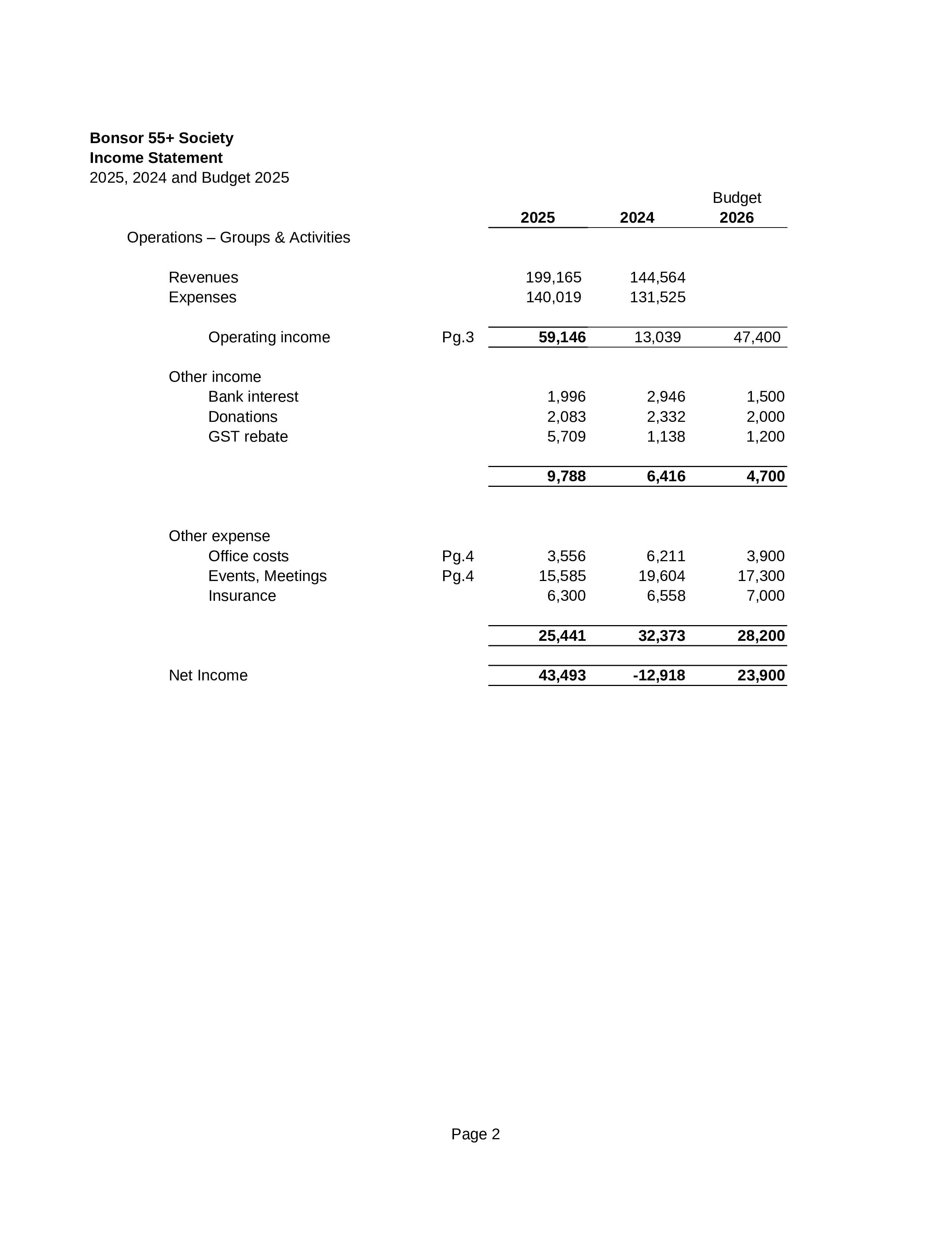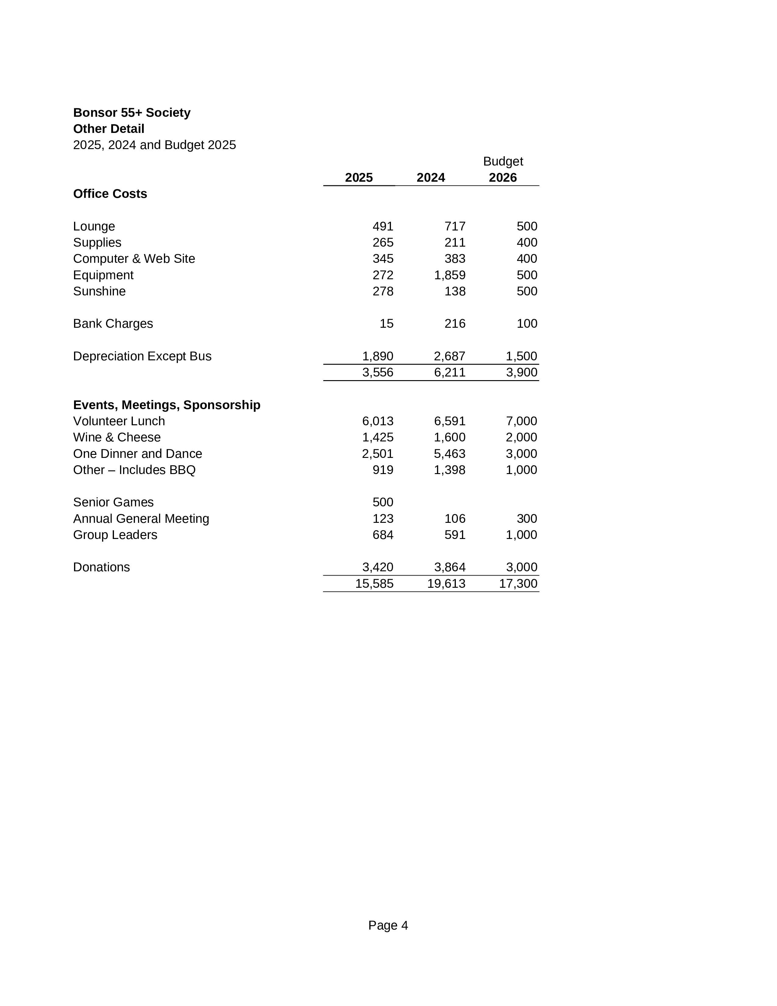 Bonsor 55+ Society Year End Financial Report 2025